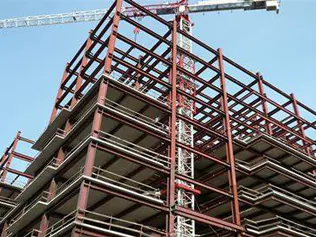 ● Trawstiau a cholofnau dur: Mae'r rhain yn ffurfio prif elfennau sy'n dwyn llwyth yr adeilad.